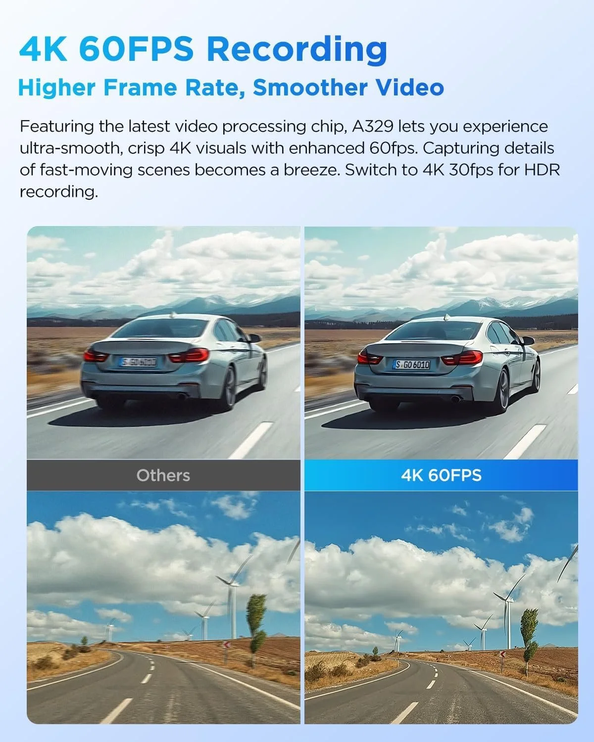 3-Channel Recording: Captures video from the front (4K), cabin (2K), and rear (2K) simultaneously, providing comprehensive coverage.